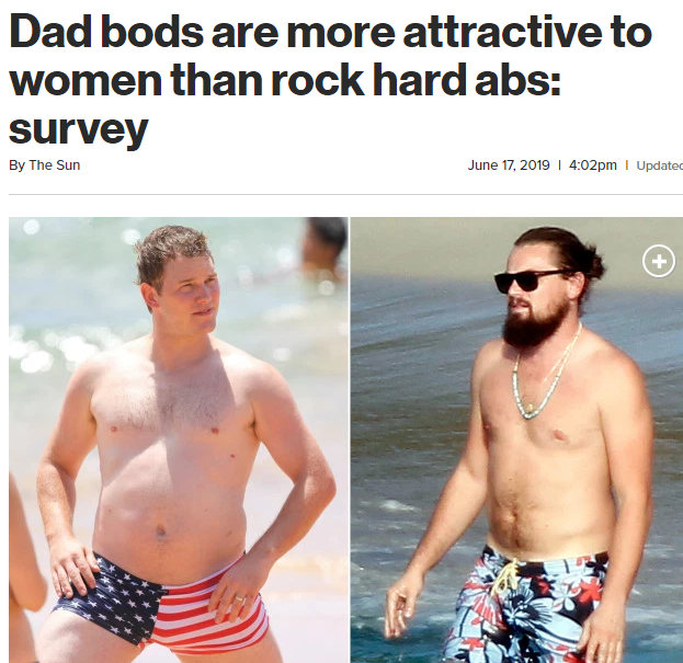 Note the difference: American flag shorts vs puka shells & man bun. Might not be about the bods at all.