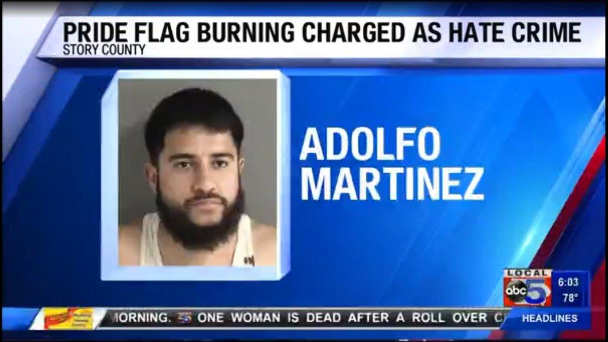 This would be an gross encroachment on free speech... However... He stole the flag (private property). He is being charged with criminal mischief and disorderly conduct. The “hate crime” headline is misleading.