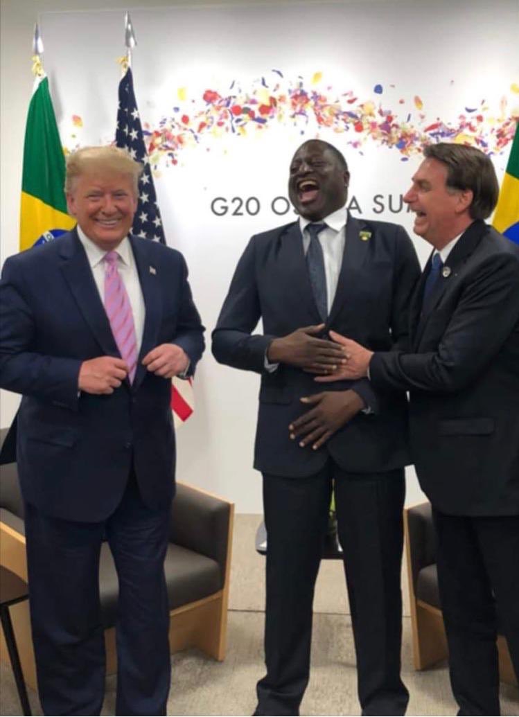 Rapaz, só de olhar essa foto dá pra imaginar que o Bolsonaro contado aquela piada de tiozão: "esse aqui é meu irmão, só que ele ficou tempo demais no forno e saiu assim. Kkkkk". É aí o tiozão de cabelo laranja vai e se escangalha junto! Tem como amar essa foto?
