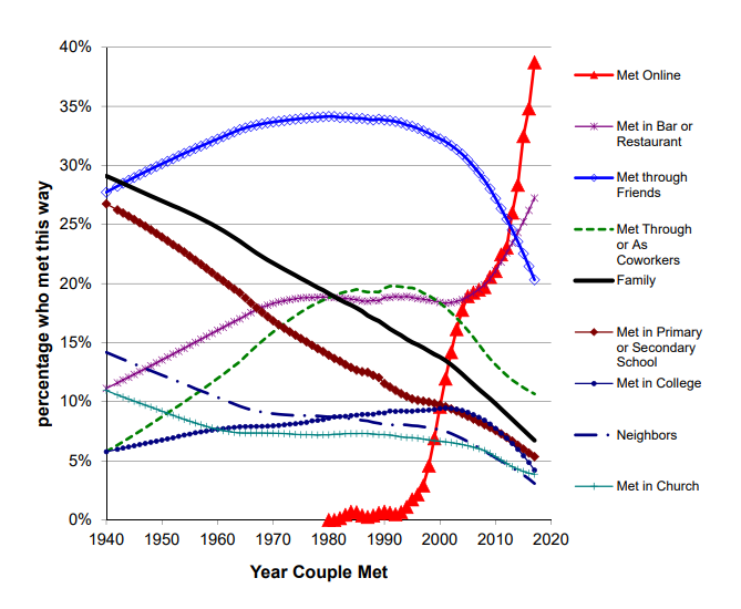 Projecting the trends into the future, in 90 years 160% of couples will have met online.