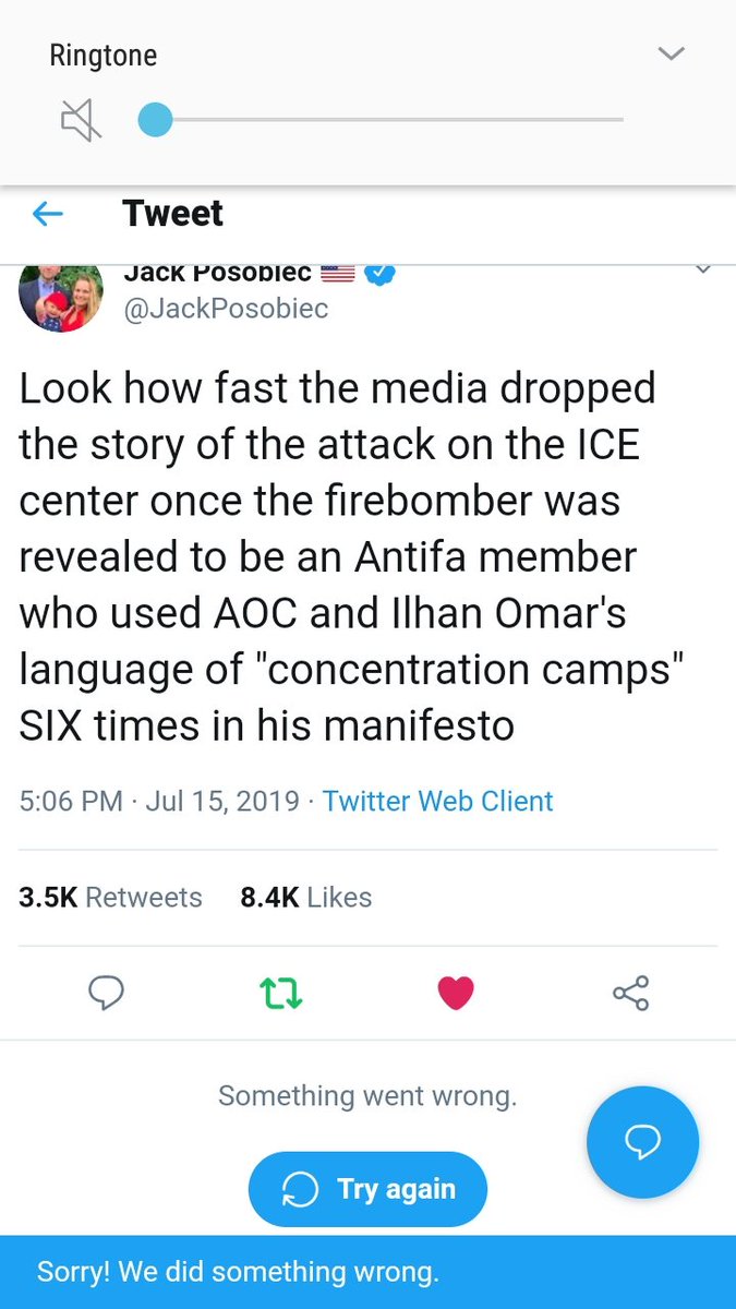 Twitter may be over capacity or experiencing a momentary hiccup. Try again or visit Twitter Status for more information.