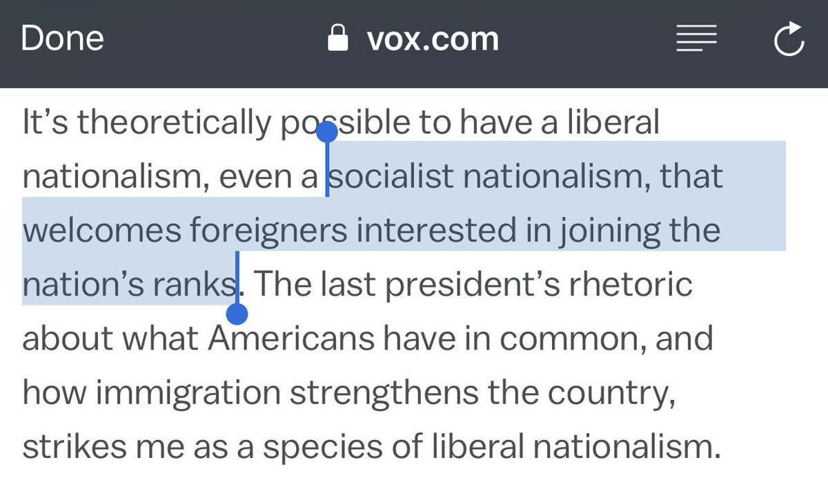 In order to ensure our protections from the government, the very goal of liberalism, requires a government accountable to us. Liberalism requires nationalism.