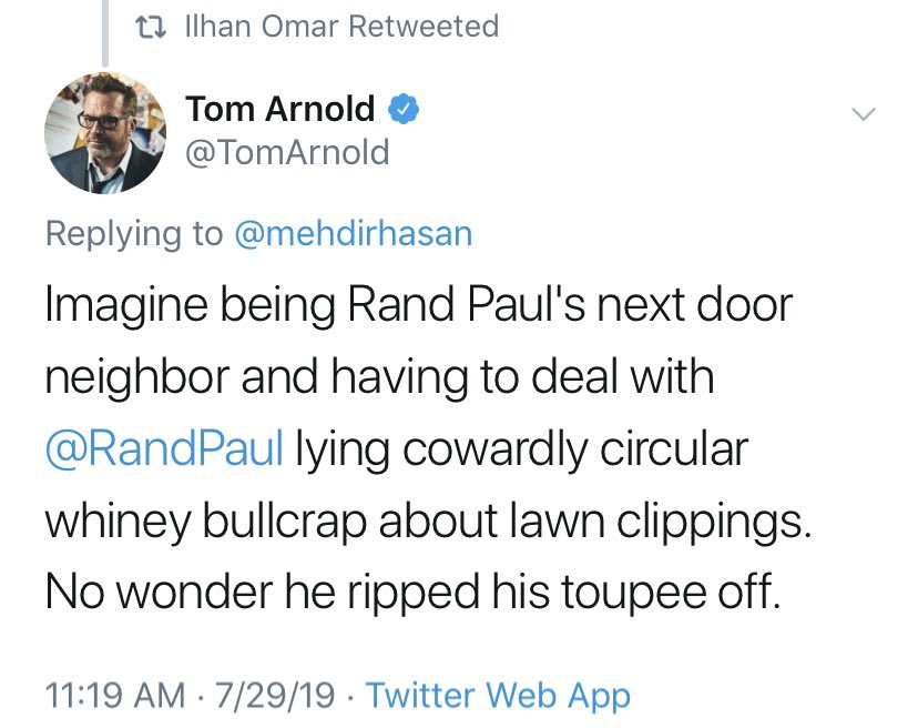#IlhanOmar is retweeting#tomarnold ...and encouraging violence against one of her colleagues. Pretty sure there are rules against this!https://twitter.com/jackposobiec/status/1155880671711256578?s=21 …