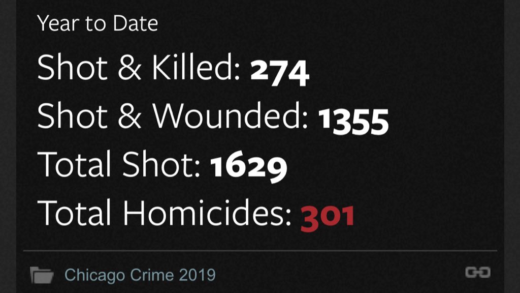 274 shot & killed through 7 months 274 / 7 = 39 shot & killed per month in Chicago Basically 1 person shot and killed per day in Chicago In a city which already has "gun-control" laws that Left is clamoring for now. More "gun-control" = turning every US city into Chicago