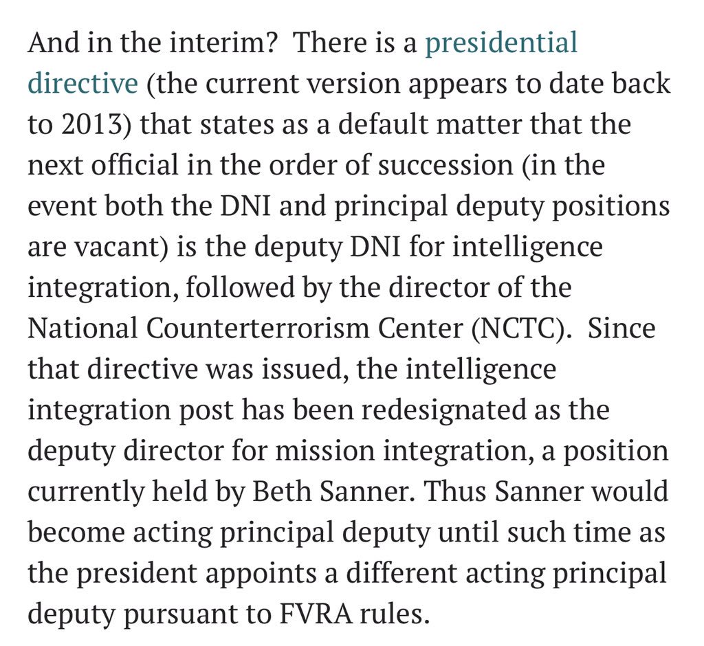 @JackPosobiec Beth Sanner is going to be appointed acting DNI. I’ll put money on it!https://twitter.com/casualsemi/status/1155856684948082688?s=21 … - 1 more reply