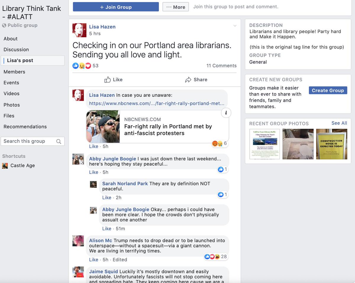 Jack, here’s a librarian calling for Trump to die or be killed, as her reaction to Portland Antifa, and she’s a director of a branch at Queens Library in NYC!https://twitter.com/SafeLibraries/status/1162958751944646656?s=21 …