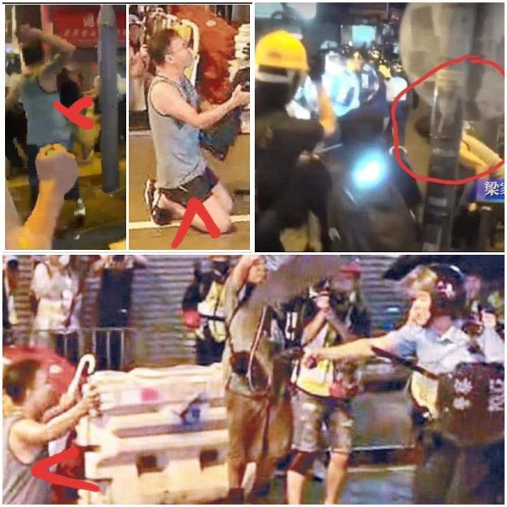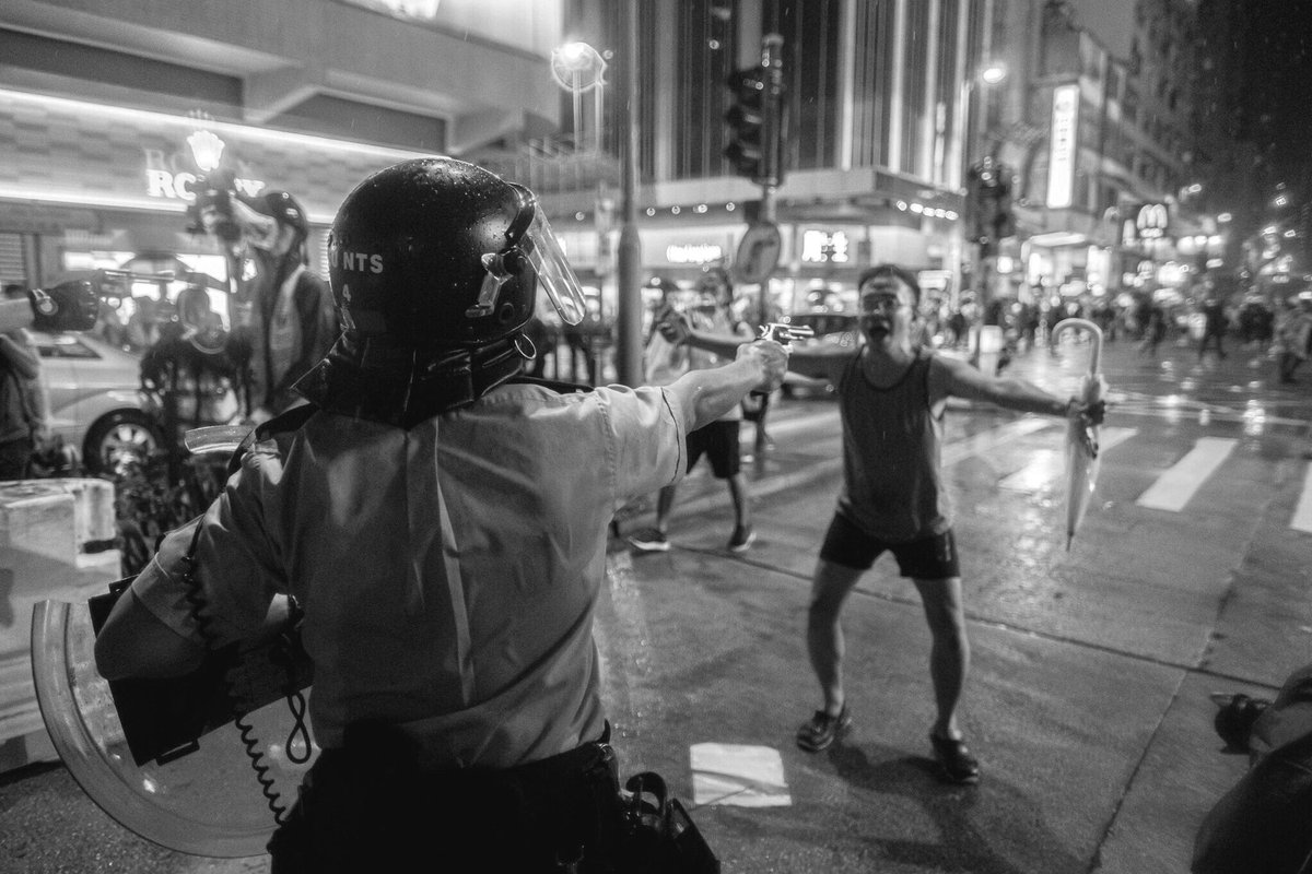 Some more action before this. The "police" had to retrieve a dropped revolver, and right after that, another "police" kicks the umbrella guy down.https://twitter.com/lokinhei/status/1165662243544895488 …