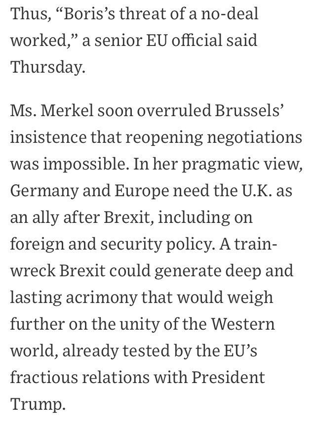 So Merkel did come to the rescue and the no deal threat worked, as Brexiteers had said - WSJ account by @MaximColch and @bopanc pic.twitter.com/JFWQcqhYZ9