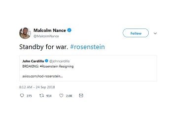 And also the SAME Malcolm Nance calling for war against the #USA government... over a rumor. That was, no surprise, FALSE. But this is who is an "expert" on "#counterterror."pic.twitter.com/zVcXKtlUl3