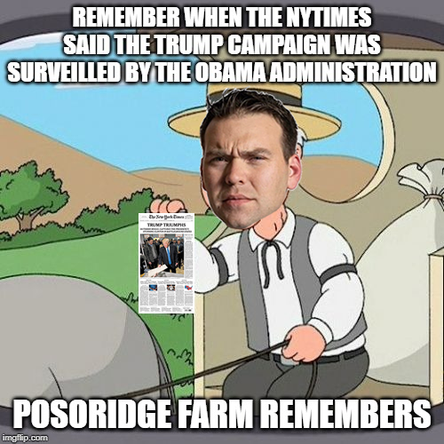 Remember when the NYTimes said the Trump Campaign was surveilled by the Obama administration? Posoridge Farm Remembers