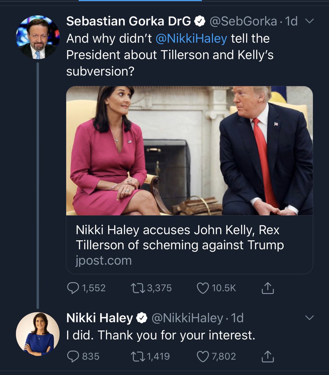 She clearly stated that she did during her todayshow interview. Both men no longer have the privilege of serving the President.