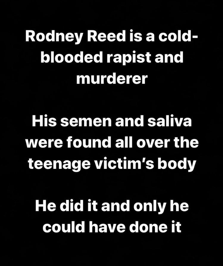 I made this simple image to share for folks who want to know about the Rodney Reed case. There's a mountain of disinformation being pushed by @DrPhil and the identity politics machine. These are the facts.pic.twitter.com/SLlCxm8mEd
