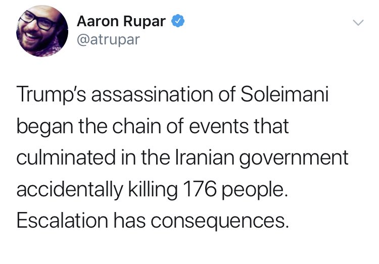 Lightning could strike and kill someone and the media would find a way to blame Trump. He should think about that next time he kills a religious scholar