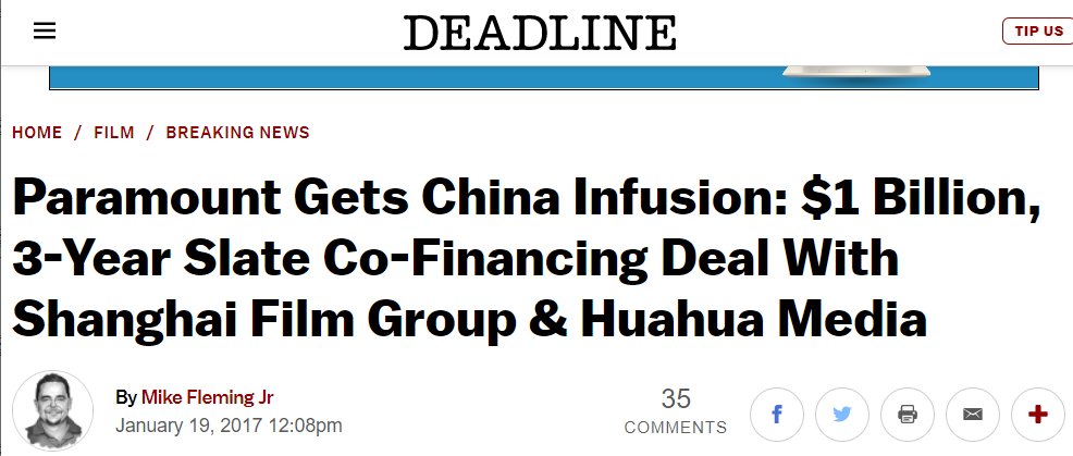 I believe the firm of a wealthy CCP connected man owns the majority share of @AMCTheatres.