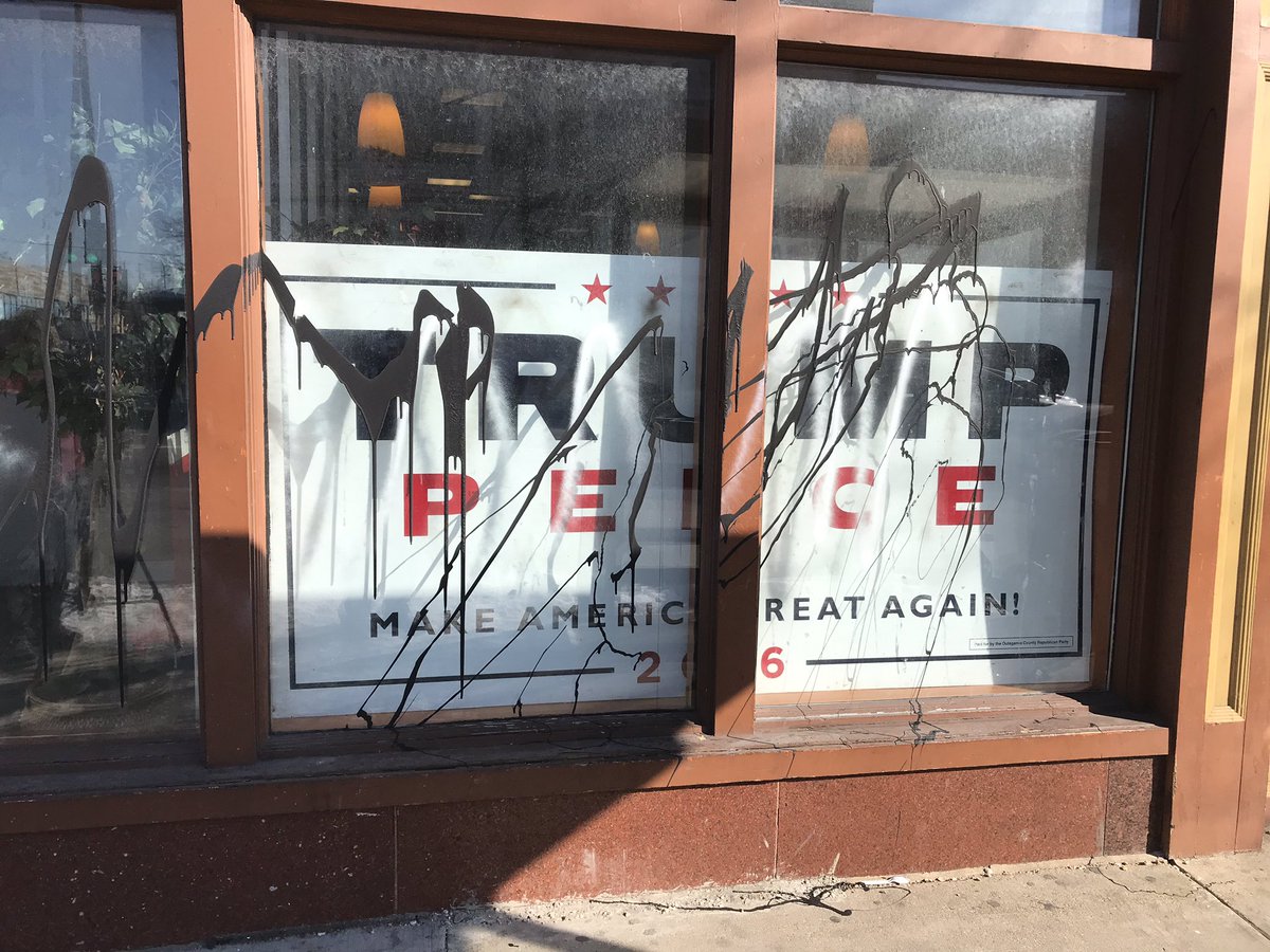 The @wisgop field office in Milwaukee was vandalized overnight with paint and graffiti on the windows and doors. pic.twitter.com/aPNBLjsJA6