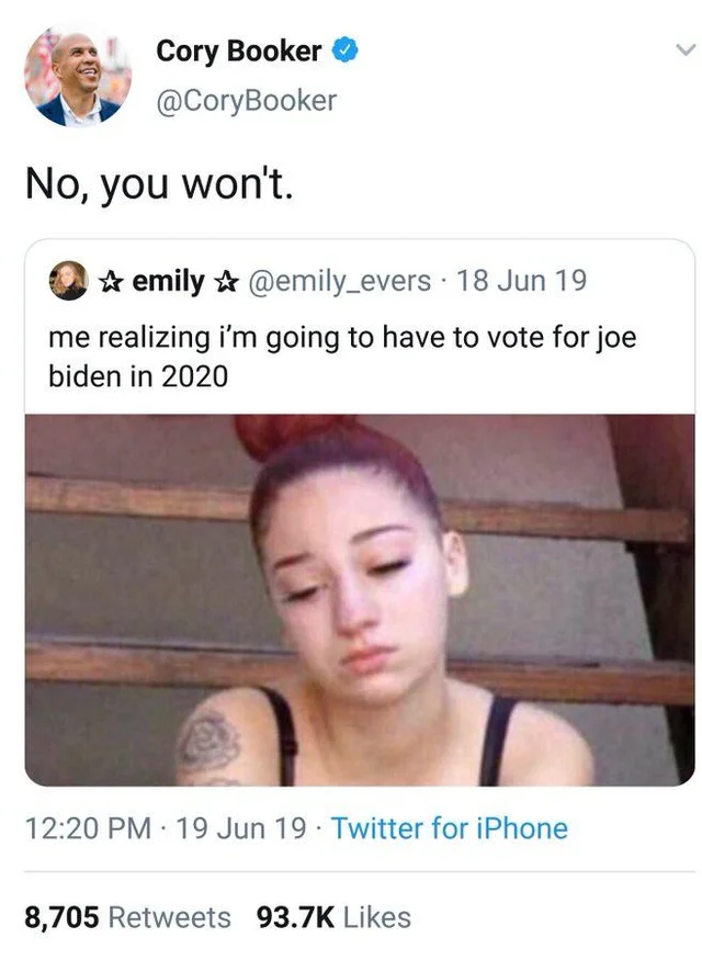 Closeted Cory is right. She doesn't have to vote for Biden. She could do what most Democrat voters are going to do- stay home.