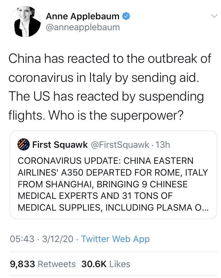 China also has hundreds of thousands of citizens in Italy. Do you think that has some influence on why they chose to help that particular nation?