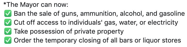 The third one is particularly frightening. She is now formally a true dictator, not an elected Mayor. That property is anything you own that she wants.