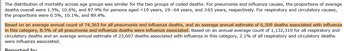 You failed reading comprehension.... "Seasonal Influenza Related Respiratory Illness" is NOT deatsh directly do to flu, it a class of deaths that covers a number of causes. Actual FLU deaths is 8% to 10% of that https://web.archive.org/web/20200227192224/https://www.cdc.gov/mmwr/preview/mmwrhtml/mm5933a1.htm …pic.twitter.com/4d9Vq8iofv