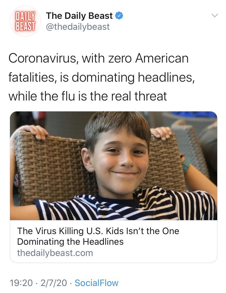 Influenza has killed 22,000 Americans SO FAR this season. But the Wuhan virus, at less than 5,000 deaths worldwide is going to end civilization as we know it.