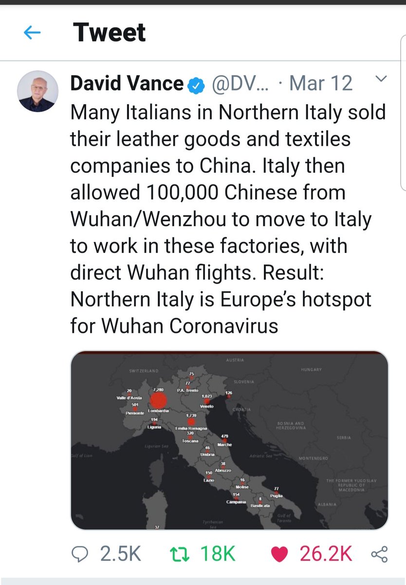 Not sure. There are 2 different strains of the virus. One is very bad so maybe thats the one Italy has. It also didn't do any good when the mayor (not sure which town in italy) had "hug a asian" day to show asians they weren't afraid of them. Truly dumb