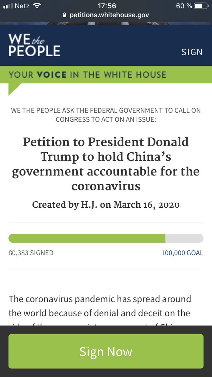https://petitions.whitehouse.gov/petition/petition-president-donald-trump-hold-chinas-government-accountable-coronavirus … Time to finish the petition successful to President Donald Trump. Please support