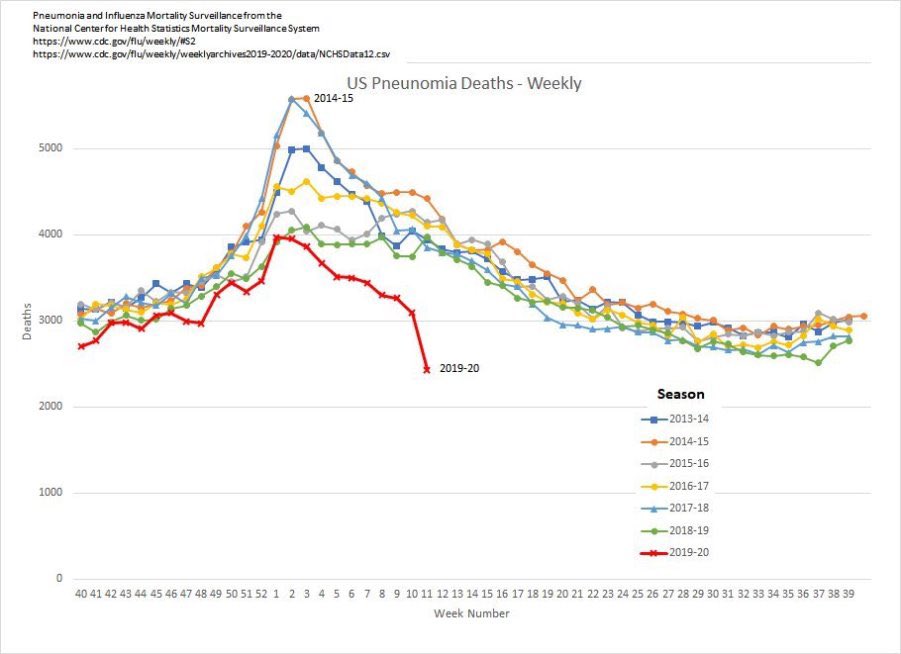 You understand why the pneumonia death plunge is relevant, unlike car accidents? Pneumonia doesn’t pause cuz you stay home. It’s “dropping” because places like NYC are misclassifying normal annual pneumonia deaths as COVID codes. Artificially inflating the death toll.