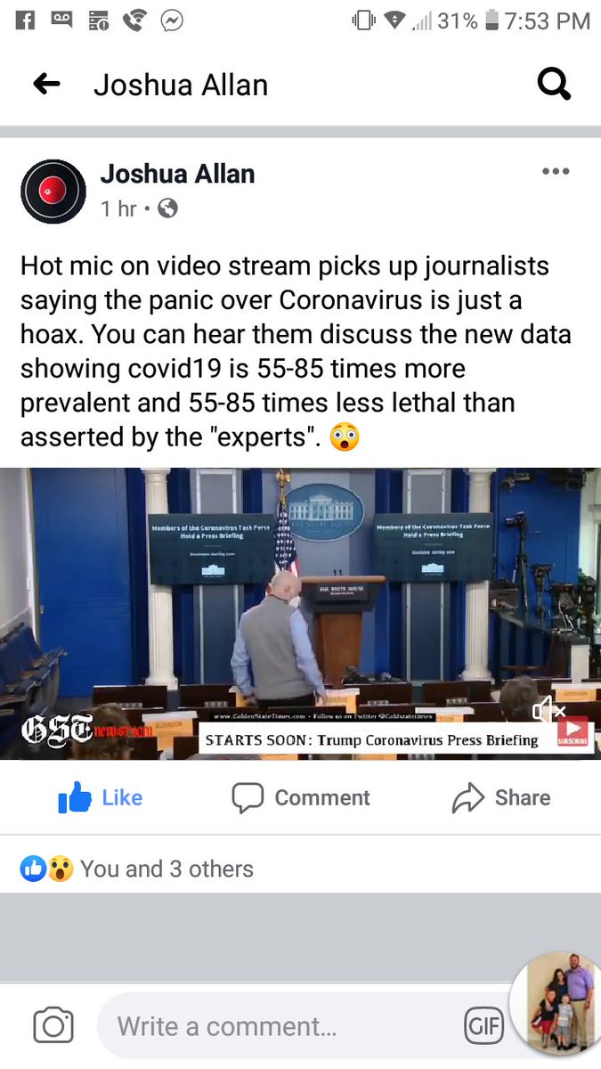Will someone plz go on this page and record this hot mic of the press briefing and post it. Facebook is banning it being shared and I can't record the audio.pic.twitter.com/zTuFwe5Pc7