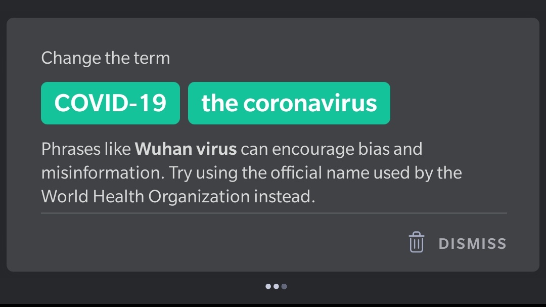 Change your term to "COVID," "Coronavirus," or "The Warm, Feverish Coughing Love of the Party."