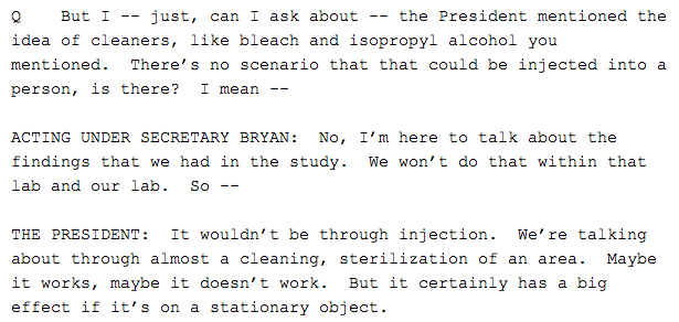 Where's the full video? Without the first part, it clearly says what he says: inject the disinfectant under the skin.https://twitter.com/itvnews/status/1253580412292661249 …