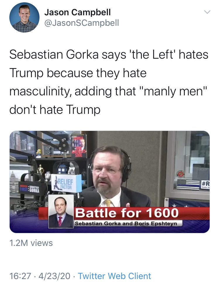 I agree, real men stand for all or most that Trump stands for. Real men despise those who can't rely on themselves or have their own thoughts.