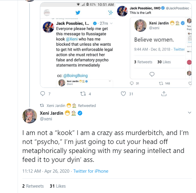 Deranged Russiagater @Xeni is now melting down in a stream of increasingly-violent death threats to me