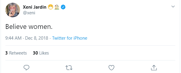 Remember, it's "Believe women . . . when it's convenient to do so". Everybody forgets that last part.