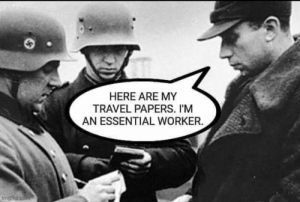 Sounds familiar. Did the shop owner have the proper paperwork on him allowing him to perform his work the way he was supposed to? As an essential employee, I have to carry my papers and PIV card at all times. Sound familiar now? See photo below.pic.twitter.com/fDwTLso5p4