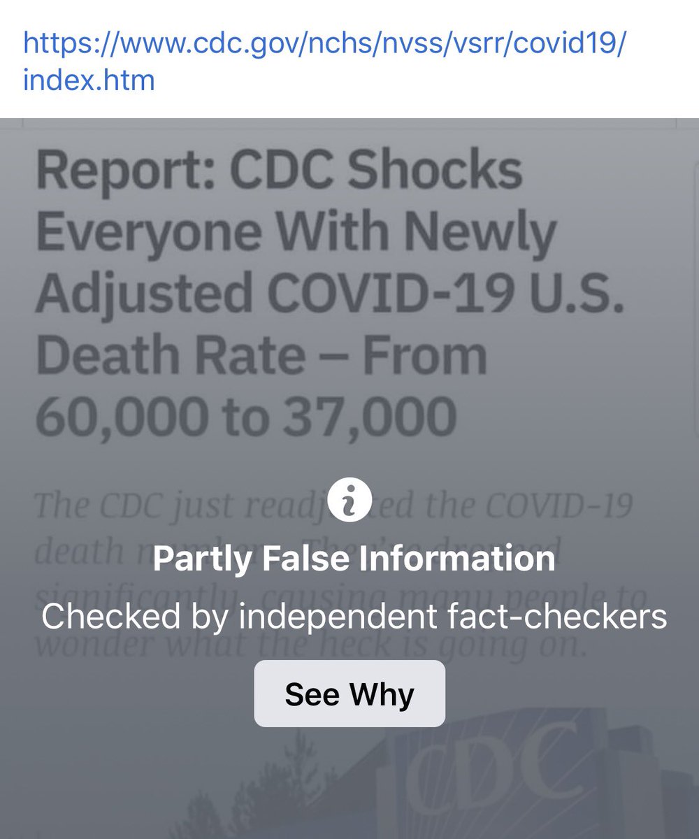 Facebook actually fact-checked and covered this CDC article!!!pic.twitter.com/lHjj3yKtwq
