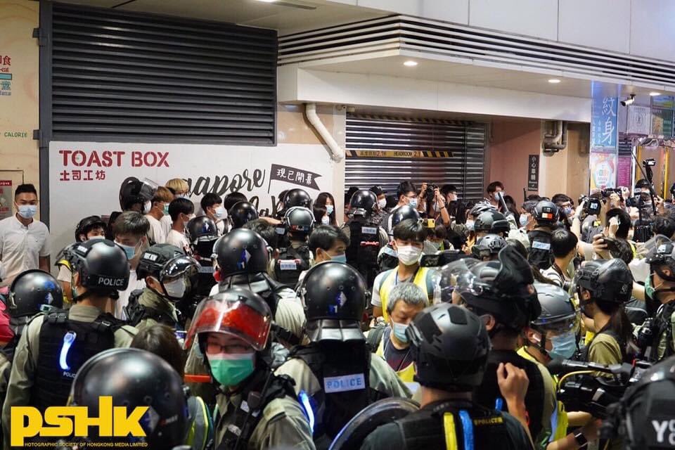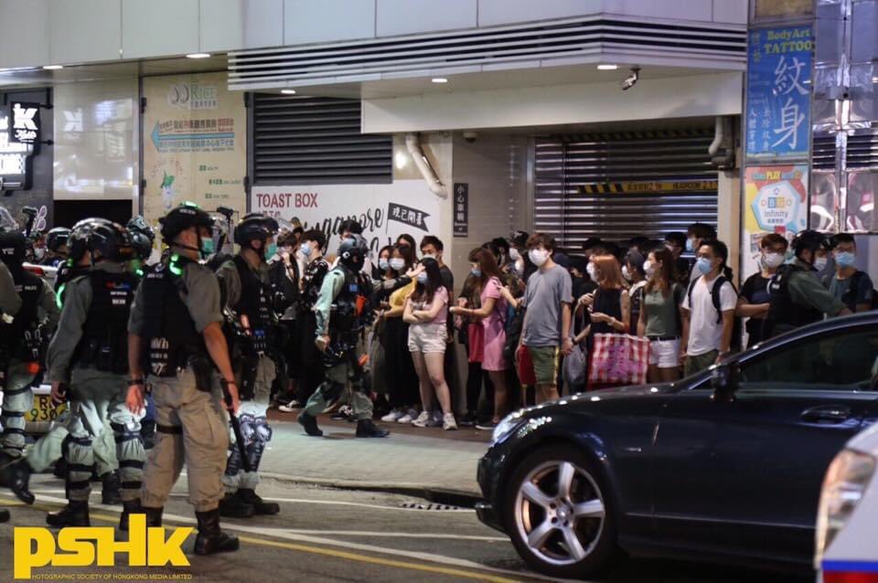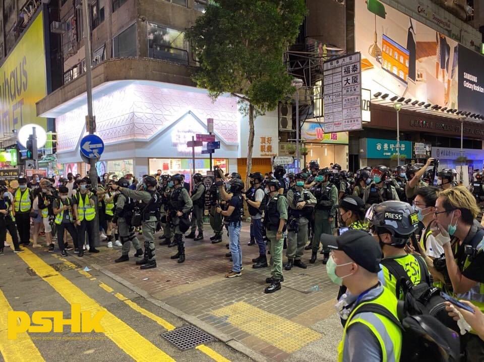 At around 9pm, #HKpolice were taking a wait-and-see approach in #MK as many citizens were present. Soon, police advanced and conducted stop-and-search operations over onlookers, who were mostly youngsters. pic.twitter.com/RU20tWdGOm