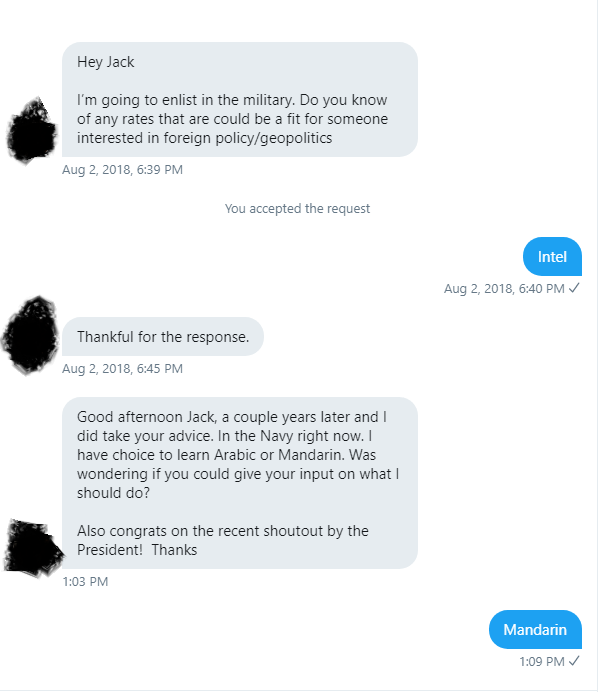 China analyst, Mandarin linguist, Veteran intel officer, Catholic, Scifi aesthete