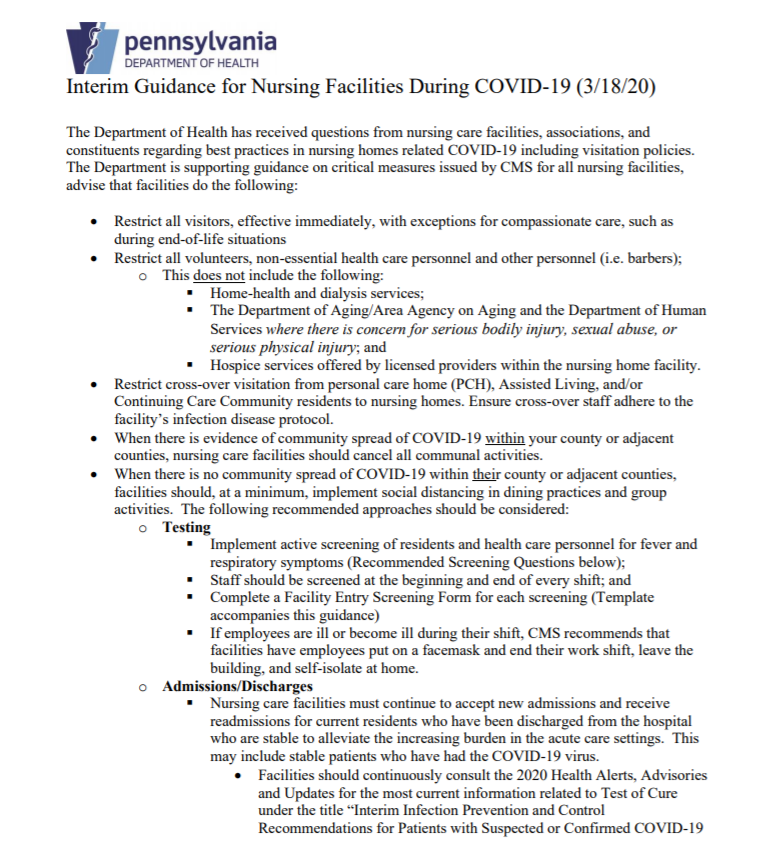 Here is Pennsylvania's @GovernorTomWolf March 18th directive requiring nursing homes to accept coronavirus patientspic.twitter.com/SweraW3GZq