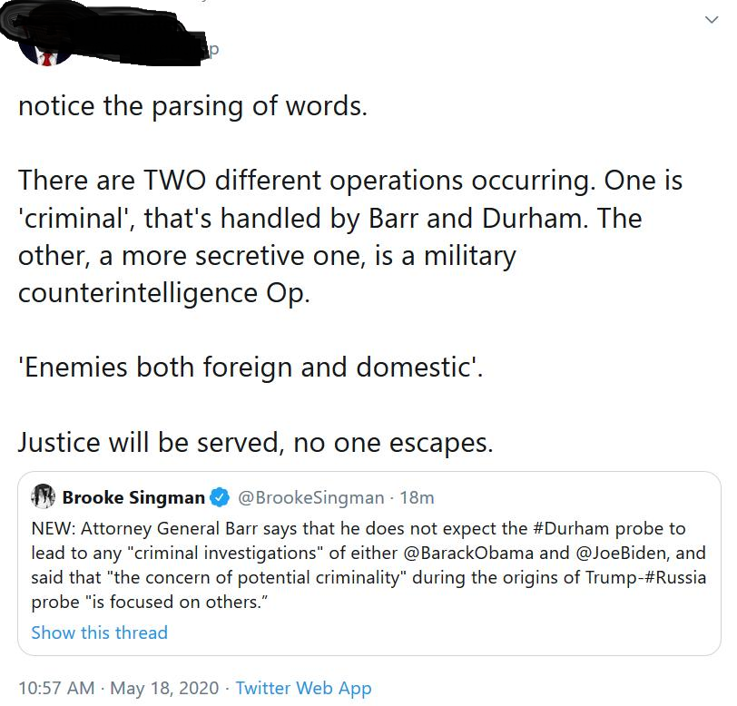 Barr & Durham have spent all this time like mueller did, getting rid of evidence, cleaning the mess trail The BHO Admin left in its wake. By next week, it will be CORRUPT BUSINESS AS USUAL in the USA. Time to