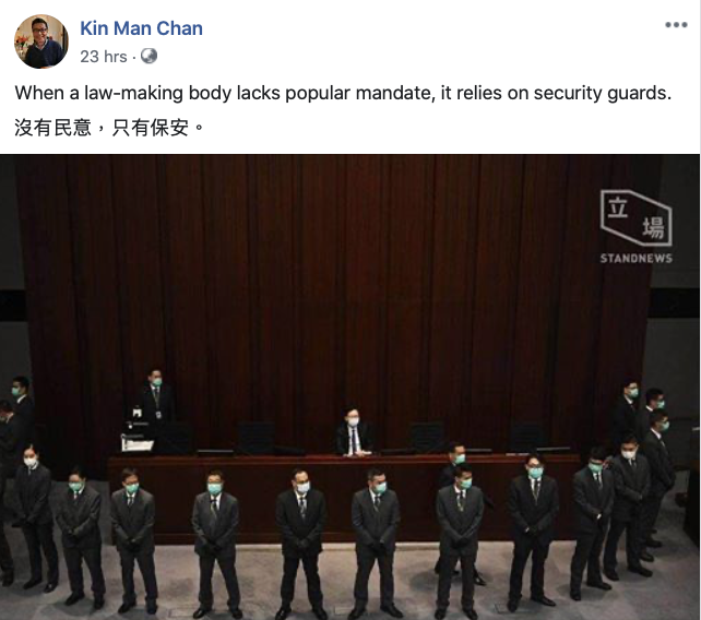 Pro-Beijing parties seized power in the Legislative Council and pro-democracy parties were driven away #StandWithHongKong #SOSHKpic.twitter.com/9kQO4R0L48