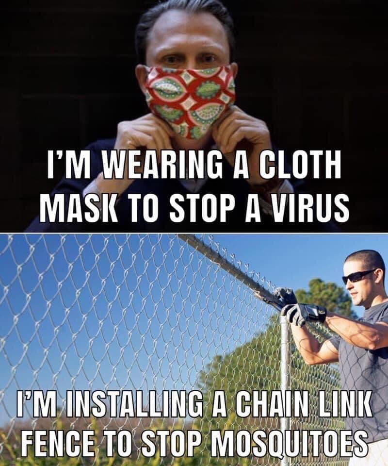 The novel corona virion is between 60 and 150 nanometers in diameter on average. How about don’t be like anybody but yourselves and become properly informed. Wearing a mask keeps a moist environment for any viruses or bacteria to thrive in. Also look up hypercapnia. Wake up time.pic.twitter.com/retnYy251s