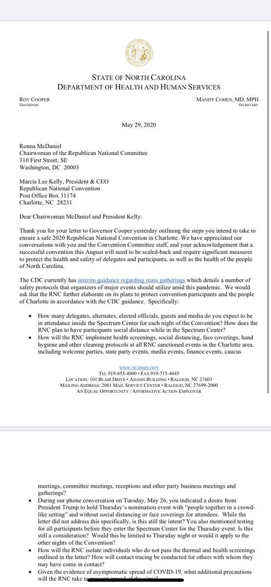 Dem. Govenor of NC's attempt to push the RNC into contract penalties. Won't happen. It will be a glorious event in Charlotte.