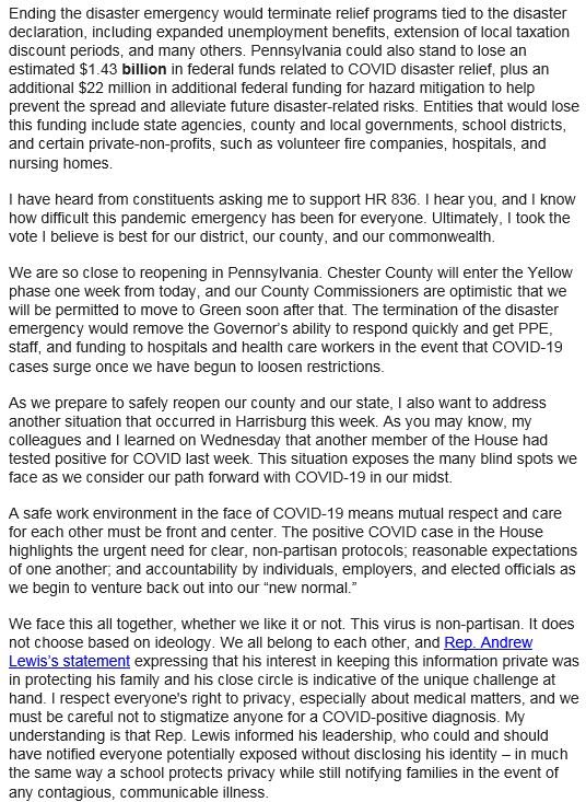 @GovernorTomWolf has made.@RepDanielle's latest email. We're so close to reopening according to her but once we're green is the emergency order terminated?pic.twitter.com/K4mlgzSSFs