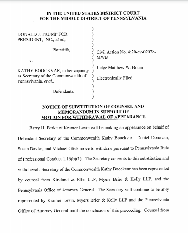 BREAKING: Kirkland & Ellis withdraws from representing Pennsylvania Secretary of State in Trump campaign case