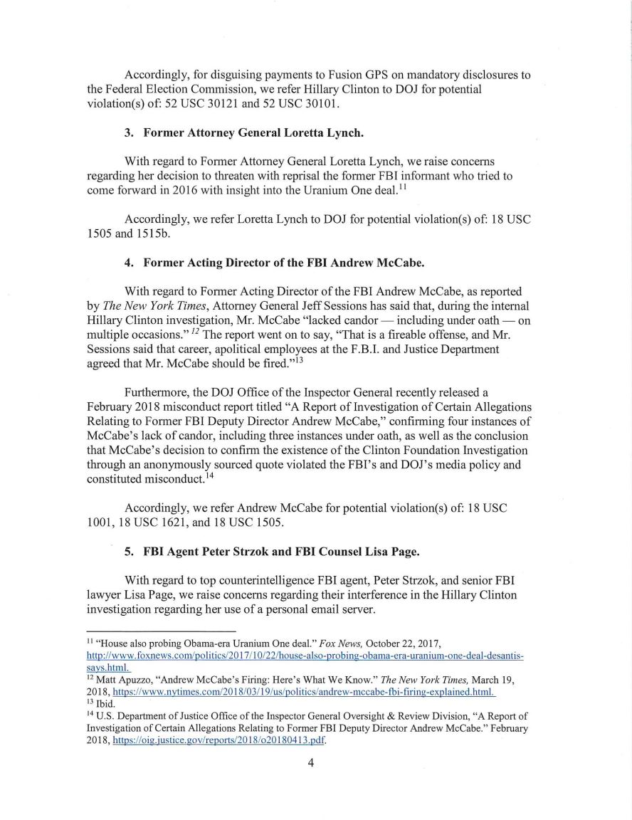 #BREAKING: 11 members of Congress have asked AG Jeff Sessions, FBI Director Chris Wray, and US attorney John Huber to conduct a criminal investigation of the following individuals: -James Comey -Hillary Clinton -Loretta Lynch -Andrew McCabe -Peter Strzok -Lisa Pagepic.twitter.com/MIe8XXpfo2
