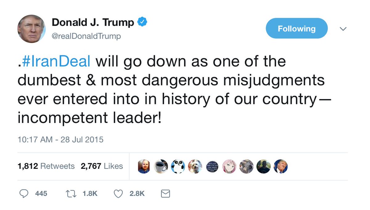 #Urgent: President Trump says Iran deal is "insane" and "ridiculous"