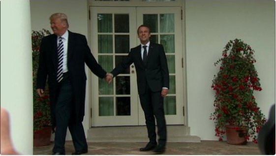 I can't tell if Trump is bullying the crap out of Macron, or if they've somehow sparked an epic international bromance.