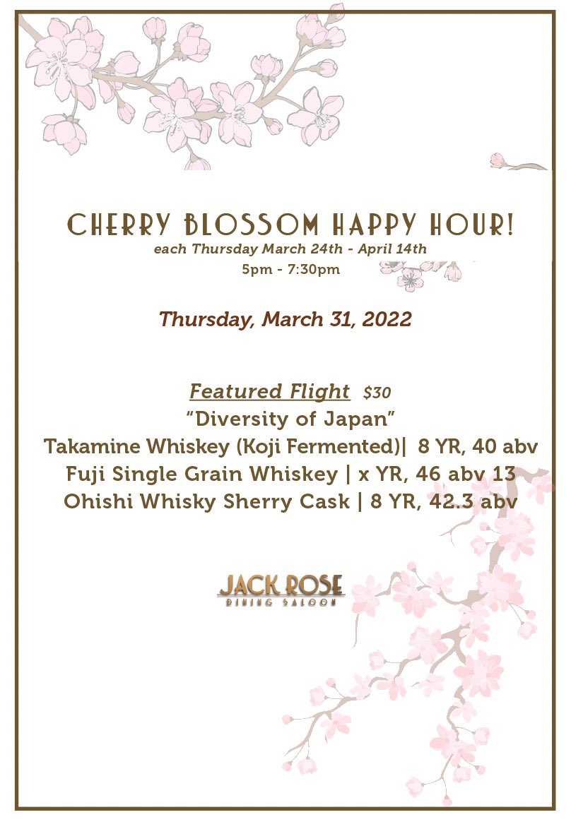 For today’s Cherry Blossom Happy Hour, we’re showcasing a specially-priced flight of Japanese whiskies!