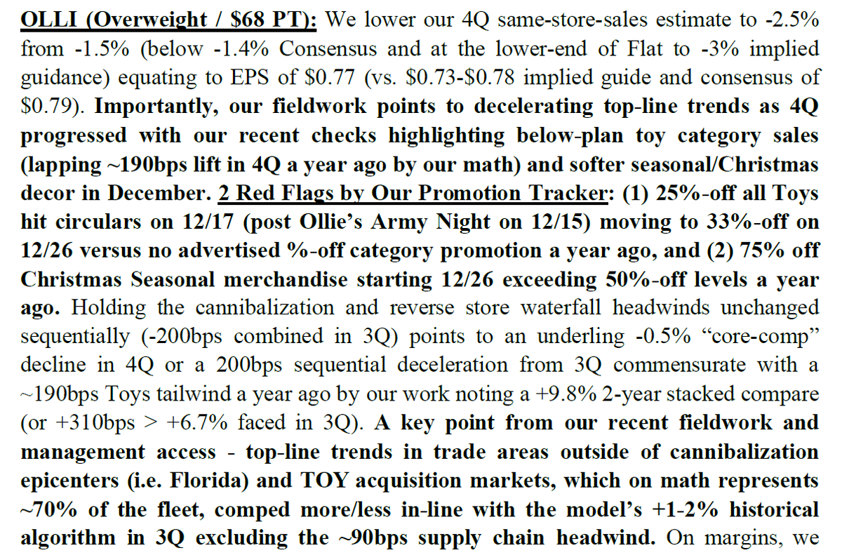 $OLLI from JPM on 1/6/20. Have to do some high-level math to get to a comp anywhere close to their long-term guidance. Also, what does 2020 hold for OLLI? Note points to recent deceleration and still have a multiple that looks high.@AlderLaneeggspic.twitter.com/7ZkXyQzP8m