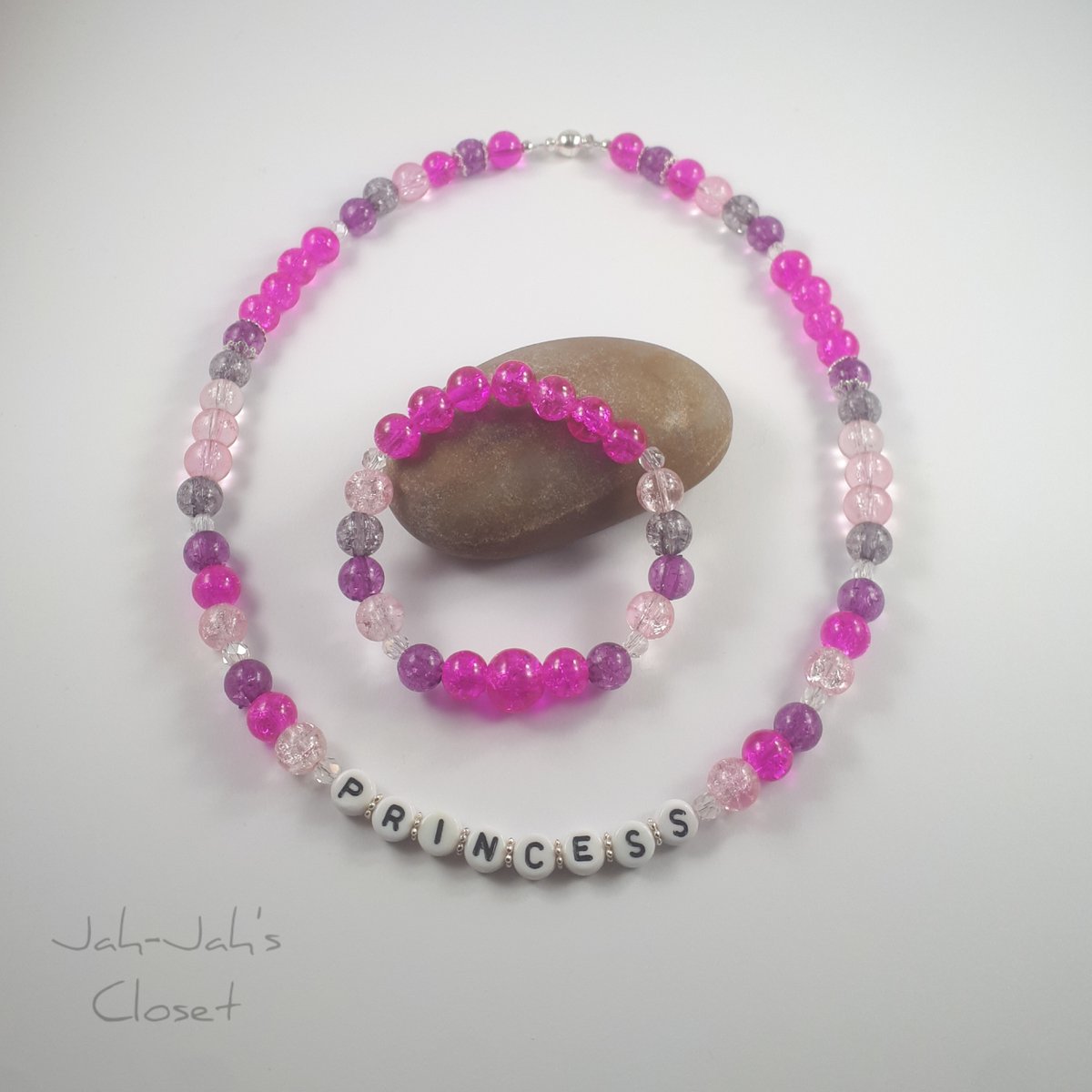 Perfect Gift for a Birthday and any other special occasions! - Pink 'Princess' Jewellery Set - Necklace & Bracelet! - Shop: https://www.jahjahscloset.co.uk/product-page/junior-jewellery-set-princess-necklace-bracelet-mixed-pink-crackle-bead … -
